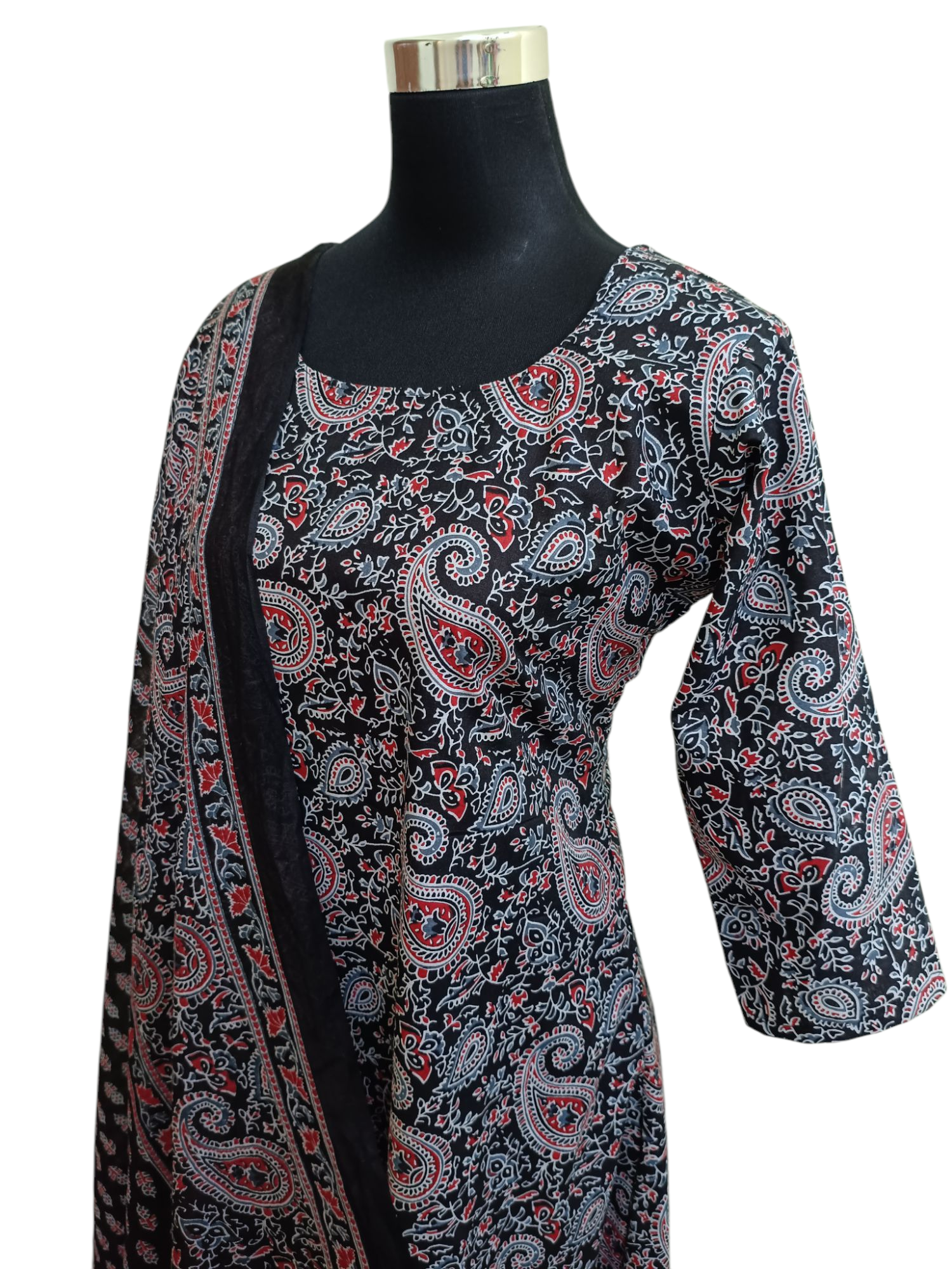Stay comfortable and stylish with our pure cotton A line kurti. Made from soft cotton, this kurti flows beautifully in an A-line silhouette and comes with a matching dupatta. Experience effortless comfort and elegant style in this must-have piece.