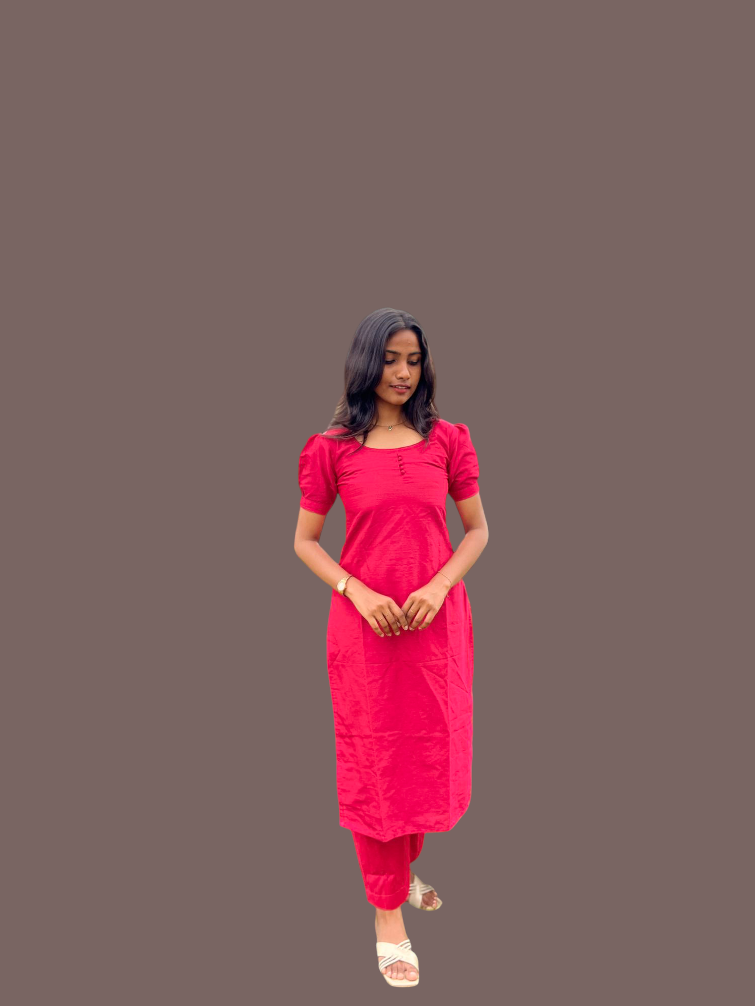 Experience elegance with this premium raw silk kurti set featuring a kota duppata and a fully lined kurti for added comfort and durability. The matching pants come with convenient pocket, combining style and practicality. Crafted with meticulous attention to detail, this set offers a refined look perfect for special occasions.