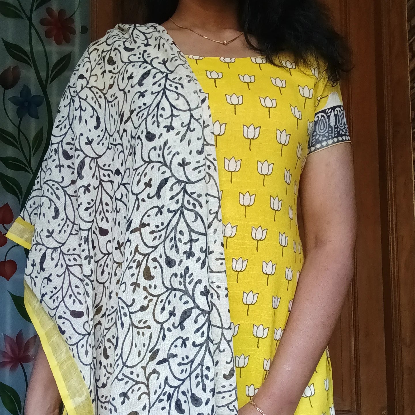 Elevate your wardrobe with this sophisticated three-piece ensemble crafted from premium linen-cotton . The thoughtfully designed top features internal lining for a refined silhouette and comfortable wear throughout the day. Complementing it is a tailored pant with a practical single pocket, perfect for everyday functionality. Complete the set with a luxuriously soft linen shawl adorned with traditional linen zari tassels, adding an elegant finishing touch. Ideal for those who appreciate quality fabrics and timeless style, this collection offers versatility and comfort for any occasion.